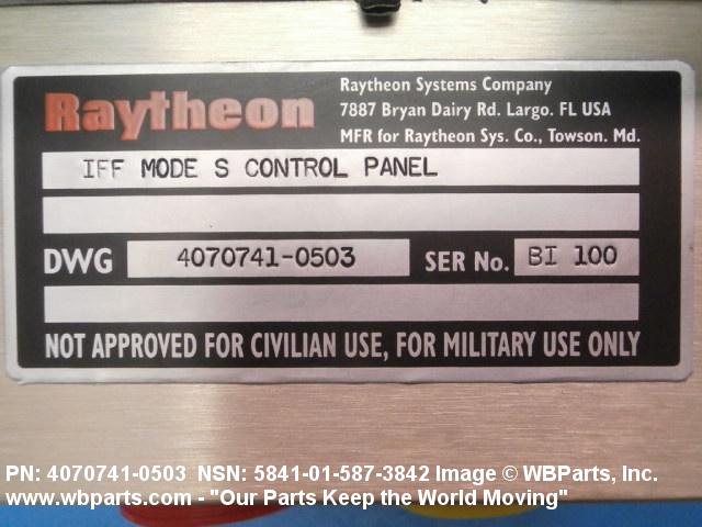 | 4070741-0503 | 06845 | RAYTHEON COMPANY DBA RAYTHEON |