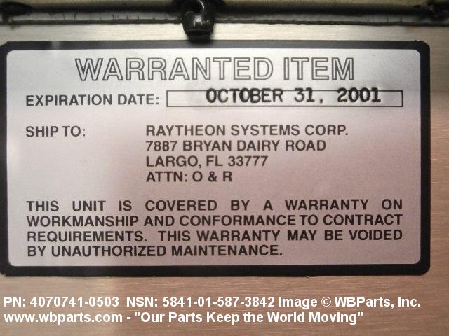 NSN 5841-01-587-3842 40707410503, 4070741-0503, 01-587-3842
