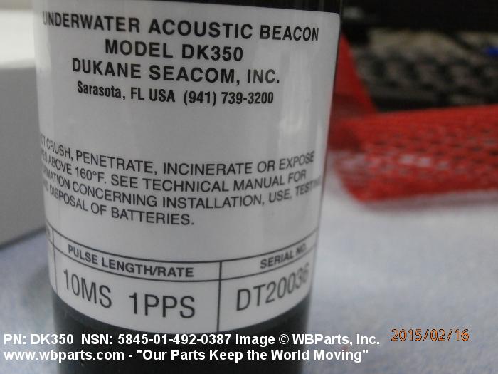 5845-01-492-0387 A water buoyant item designed to automatically transmit underwater sound waves for the purpose of providing bearing information and generally used as a navigational aid.