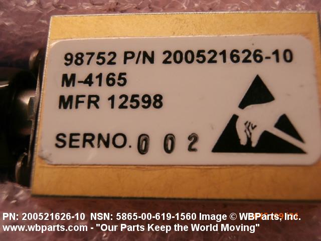 Part Alternates: 20052162610, 200521626-10 , 2103569302, 21-035693-02, 2203623202, 22-036232-02, 3202661201, 32-026612-01, 5865-00-619-1560, 00-619-1560, 5865006191560, 006191560, 200521739