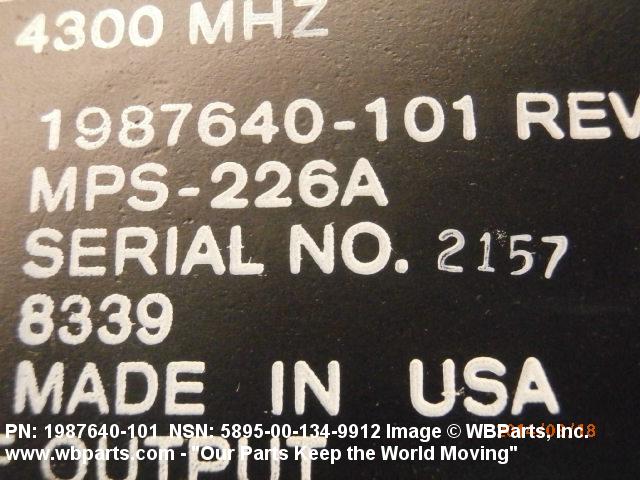 Part Alternates: 07-77-00680, 1987640101, 1987640-101, 5895-00-134-9912, 00-134-9912, 5895001349912, 077700680, 001349912