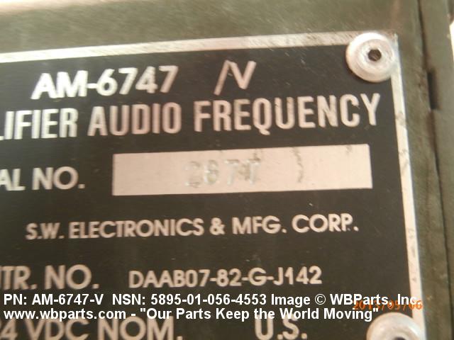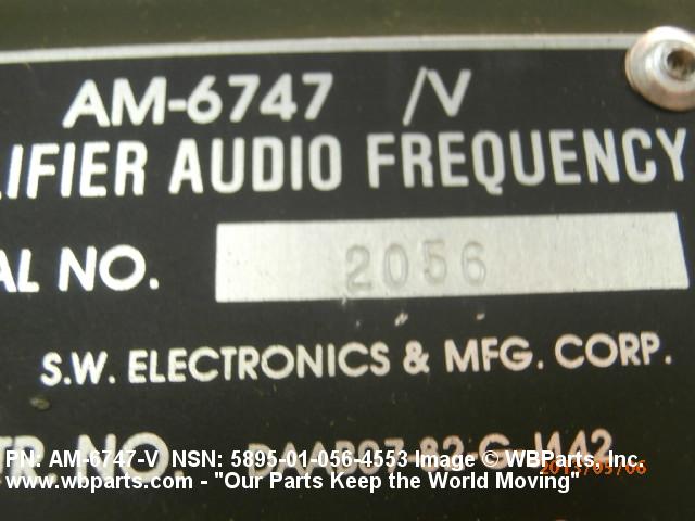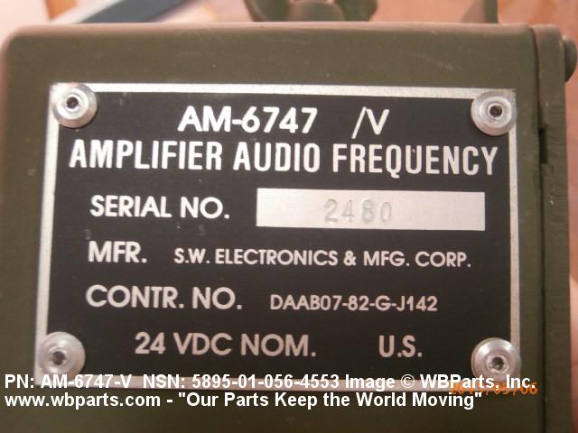 5895-01-056-4553 An electronic device whose audio frequency input signals control power from a source independant of the input signal and delivers audio frequency output signals of greater amplitude with respect to current and/or voltage. The output signals characteristics are uniformly related to the input signals. It operates at frequencies of 20 kilohertzs and below. It may or may not have signal switching capabilities.