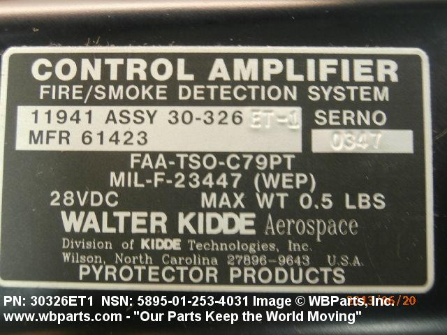 | 30-326ET1 | 61423 | KIDDE TECHNOLOGIES INC DIV KIDDE AEROSPACE AND DEFENSE |