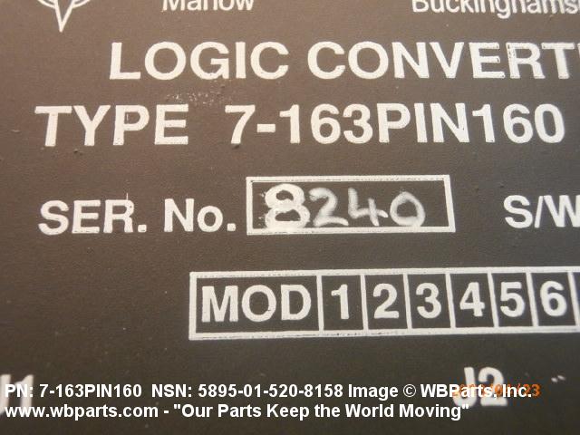 Part Alternates: 002160, 7162PIN160, 7-162PIN160, 7163PIN160, 7-163PIN160, 5895-01-520-8158, 01-520-8158, 5895015208158, 015208158