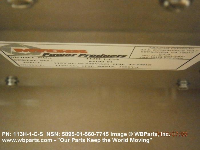 Part Alternates: 113F1CS, 113F-1-C-S , 113H1CS, 113H-1-C-S, 5895-01-560-7745, 01-560-7745, 5895015607745, 015607745