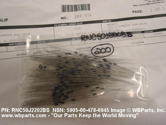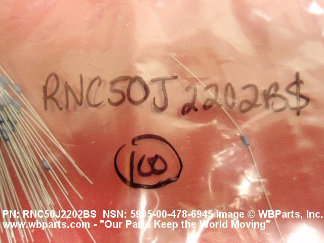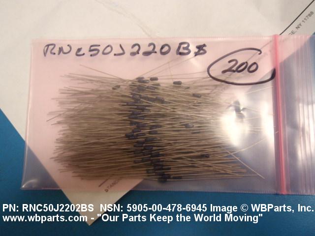 Part Alternates: MIL-R-55182/7, MILR551827, RNC50J2202BS, RNR50J2202BP, 5905-00-478-6945, 00-478-6945, 5905004786945, 004786945
