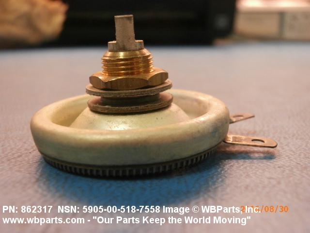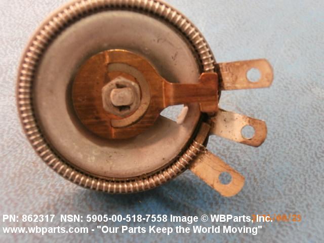 5905-00-518-7558 A resistor in which a sliding or rolling contact moves over an exposed area of the resistive element to change the ohmic value of the output. The functional tolerance (linearity), if given, of the output is greater than plus of minus 1 percent on linear outputs. Specified outputs such as sine, cosine, tangent, etc., shall be considered to be precision. For items having manually positioned taps designed to be set and fixed prior to use, see RESISTOR, ADJUSTABLE. For items with step by step variation, see RHEOSTAT and RESISTOR, STEP BY STEP. For tandem-mounted items designed to function together as an attenuator (and rated accordingly), see ATTENUATOR, VARIABLE. Excludes RESISTOR (1), VARIABLE, NONWIRE WOUND, NONPRECISION; RESISTOR (1), VARIABLE, NONWIRE WOUND, PRECISION; and RESISTOR (1), VARIABLE, WIRE WOUND, PRECISION.