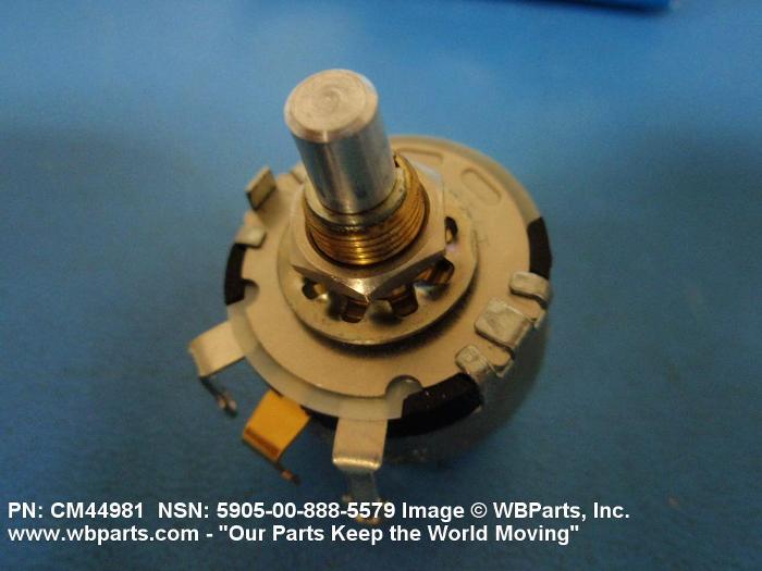 5905-00-888-5579 A resistor in which a sliding or rolling contact moves over an exposed area of the resistive element to change the ohmic value of the output. The functional tolerance (linearity), if given, of the output is greater than plus of minus 1 percent on linear outputs. Specified outputs such as sine, cosine, tangent, etc., shall be considered to be precision. For items having manually positioned taps designed to be set and fixed prior to use, see RESISTOR, ADJUSTABLE. For items with step by step variation, see RHEOSTAT and RESISTOR, STEP BY STEP. For tandem-mounted items designed to function together as an attenuator (and rated accordingly), see ATTENUATOR, VARIABLE. Excludes RESISTOR (1), VARIABLE, NONWIRE WOUND, NONPRECISION; RESISTOR (1), VARIABLE, NONWIRE WOUND, PRECISION; and RESISTOR (1), VARIABLE, WIRE WOUND, PRECISION.