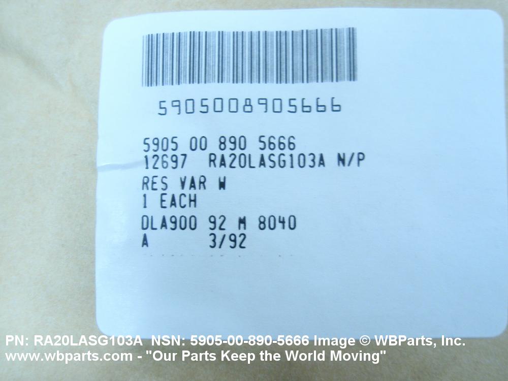 Part Alternates: BA2156711, BA21567-11, MIL-R-19/2, MILR192, RA20LASG103A, 5905-00-890-5666, 00-890-5666, 5905008905666, 008905666