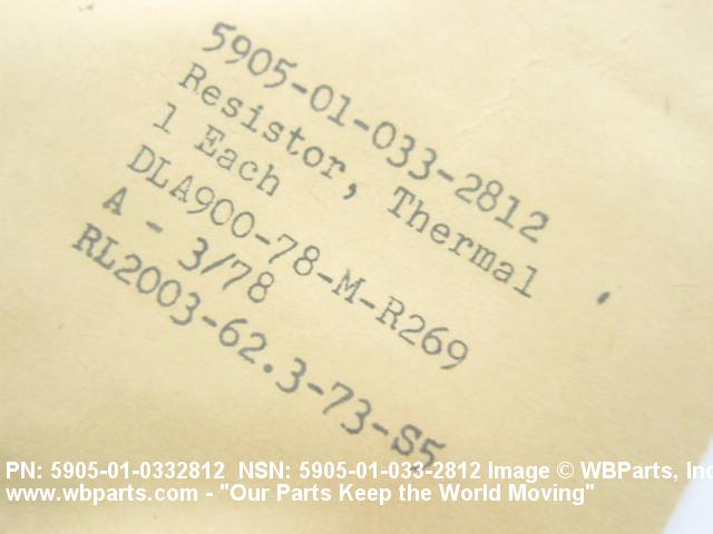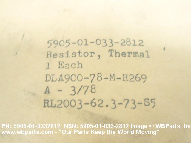 5905-01-033-2812 A thermally sensitive resistor whose primary function is to exhibit a change in electrical resistance with a change in body temperature. Item may be mounted in a probe or housing. For ballast tube type resistors, see RESISTOR (1), CURRENT REGULATING. Excludes TRANSMITTER (1), TEMPERATURE, ELECTRICAL RESISTANCE and TEMPERATURE ELEMENT, RESISTANCE METEOROLOGICAL.