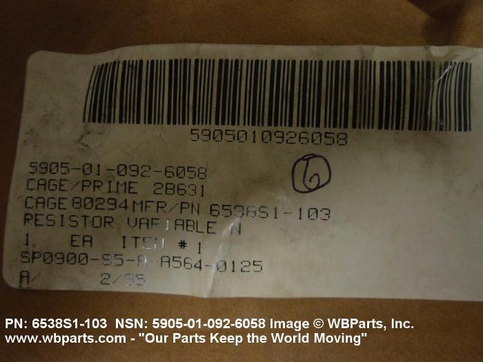 NSN 5905-01-092-6058 6538S1103, 6538S1-103, 01-092-6058
