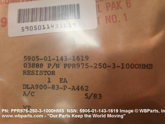 Part Alternates: CR1027, PPR97525031000J, PPR975-250-3-1000J, PPR9752503100OHMS, PPR975-250-3-100OHMS, 50549001, 5054900-1, 5905-01-143-1619, 01-143-1619, 5905011431619, 011431619