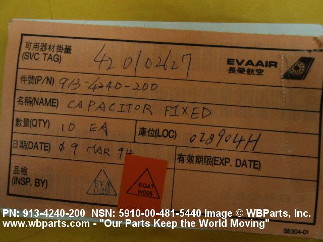 Part Alternates: 2C067104X0201A3, 2C20XSR104200B, 2CX7R104X0200C5, 300100601104M, 300-100-601-104M, 300200X7R104M, 300-200-X7R-104M, 7C067104X0201C, 8131200X7R104M, 8131-200-X7R-104M, 8131M200W5R0104M, 8131-M200W5R0104M, 9134240200, 913-4240-200, 5910-00-481-5440, 00-481-5440, 5910004815440, 004815440