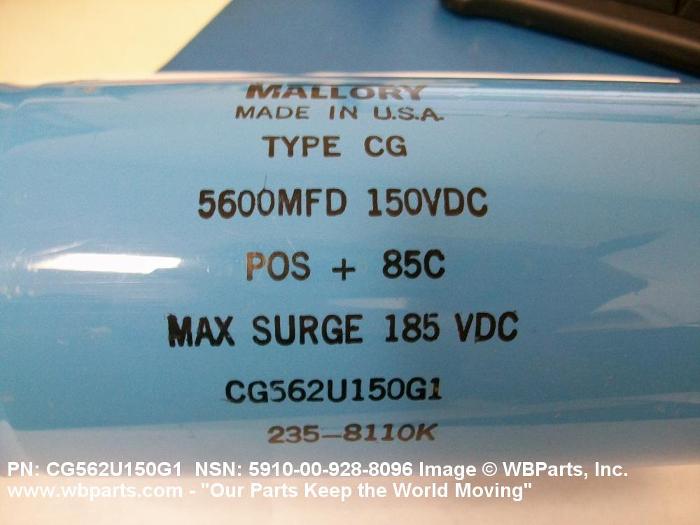 Part Alternates: CG562U150G1, CG562U150X5L, 5910-00-928-8096, 00-928-8096, 5910009288096, 009288096