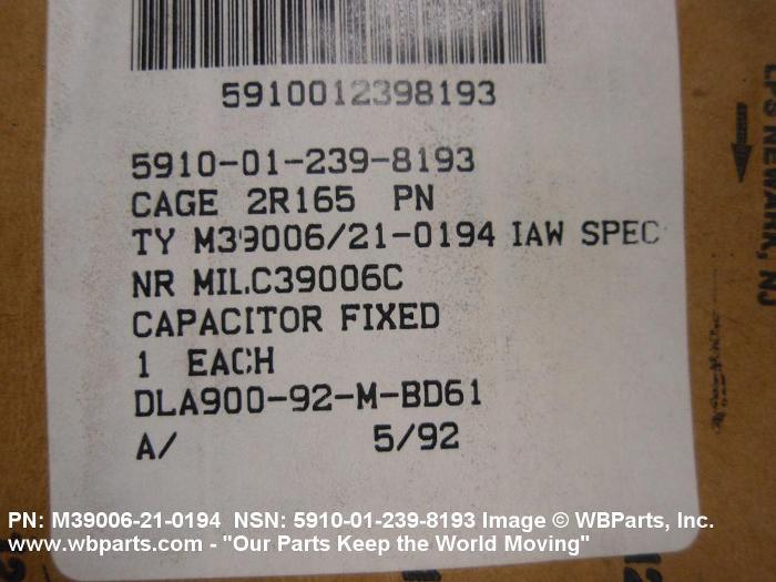 Part Alternates: M39006/21-0194, M39006210194, MIL-C-39006/21, MILC3900621, 5910-01-239-8193, 01-239-8193, 5910012398193, 012398193