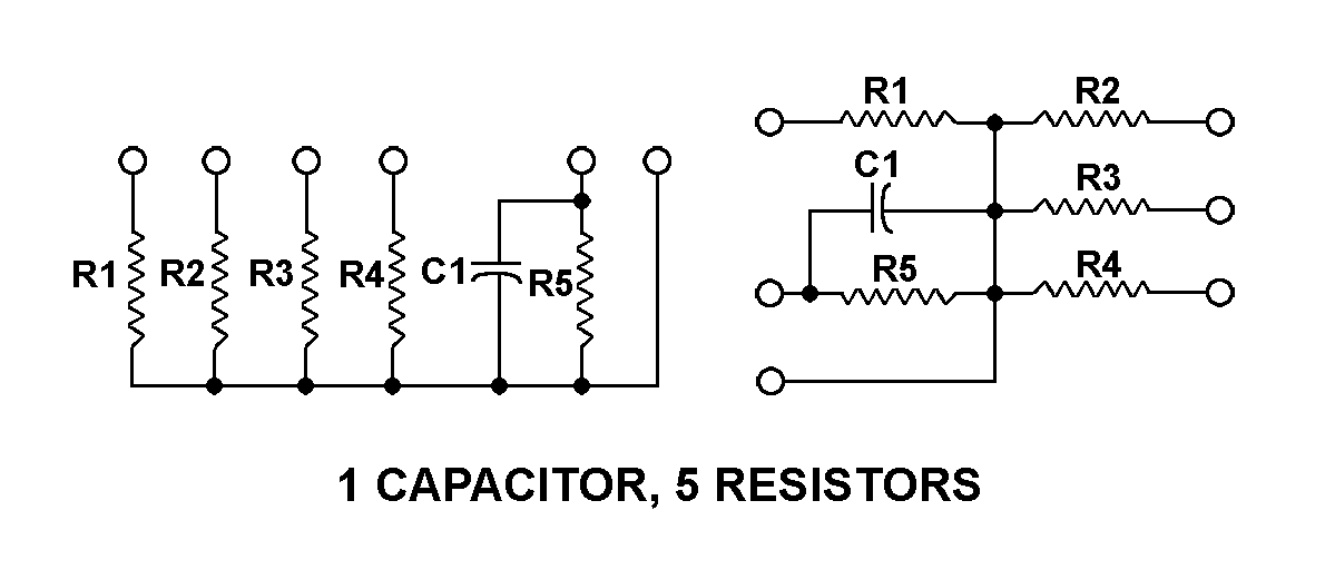 5915-00-938-4312 An item consisting of one or more capacitors and one or more resistors molded together, housed together in a common case, or mounted on a common board. The individual capacitors and resistors are not separable and the overall item usually has various design applications; hence, cannot be considered a subassembly. Do not use if more applicable item names, such as FILTER (as modified), or NETWORK (as modified), exist.