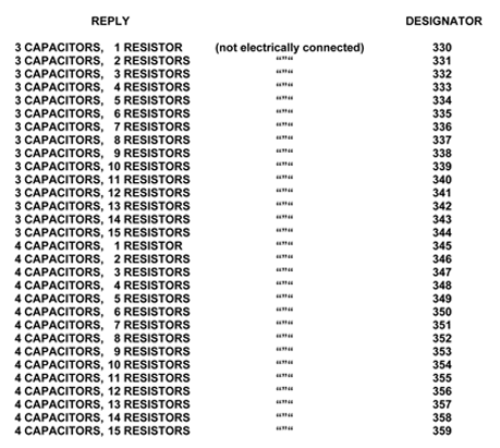 | 59 | 02 FEB 1990 | 01-314-6404 | 05090 ( CAPACITOR-RESISTOR ) |