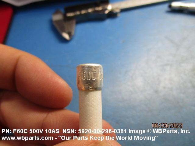 Part Alternates: F60C250V10AS, F60C500V10A, F60C500V10AS, F60C500V-10AS, F60C500V1OAS, F60C500Y10AS, F60H6R00C, KLM10, KLM10A500V, MIL-F-15160/60, MILF1516060, MIL-PRF-15160/60, MILPRF1516060, V018161, 68507492, 6850749-2, 6956ED518 PC 11, 6956ED518PC11, 6968ED516 PC9, 6968ED516PC9, 7498R100PC38, 02103028, 02-10-3028, 103.9-147, 1039147, 229B3554G4AS617, 229B3554G4AS6-17, 229B3554G4S617, 229B3554G4S6-17, 229B3554G5AS517, 229B3554G5AS5-17, 229B3554G6AS617, 229B3554G6AS6-17, 2635-088-22 ITEM 1-376, 263508822ITEM1376, 288A899AB10, 288A899BP10, 441551, 44-1551, 5920-00-296-0361, 00-296-0361, 5920002960361, 002960361
