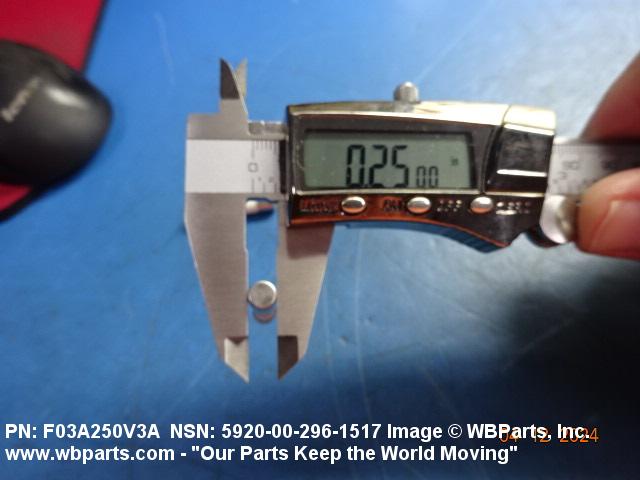 Part Alternates: MS9007921, MS90079-2-1, SKRR517 ITEM 34, SKRR517ITEM34, VBE8603A3K, VBE860-3A3K, PMF3S, PM-F3S, F030A250V3AS, F032503AS, F03-250-3AS, F03A2503AS, F03A250-3AS, F03A250V03A, F03A250V03AS, F03A250V3A, F03A250V3AAS, F03A250V3AS, F03A25V3AS, F03G3R00A, FUE0114, MIL-F-15160/3, MILF151603, MIL-PRF-15160/3, MILPRF151603, 010079-012, 1080H30H24, 11460, 352250005443, 3AG3A, 3AG3ASB, 4133725054, 4133725-054, 4150142PC102, 4150-142PC102, 4413064, 44-1306-4, 511-7610107-011, 6500006, 650-0006, 73110755012, 731-10755012, 81962, 5920-00-518-1793, 00-518-1793, 5920005181793, 5117610107011, 010079012, 005181793