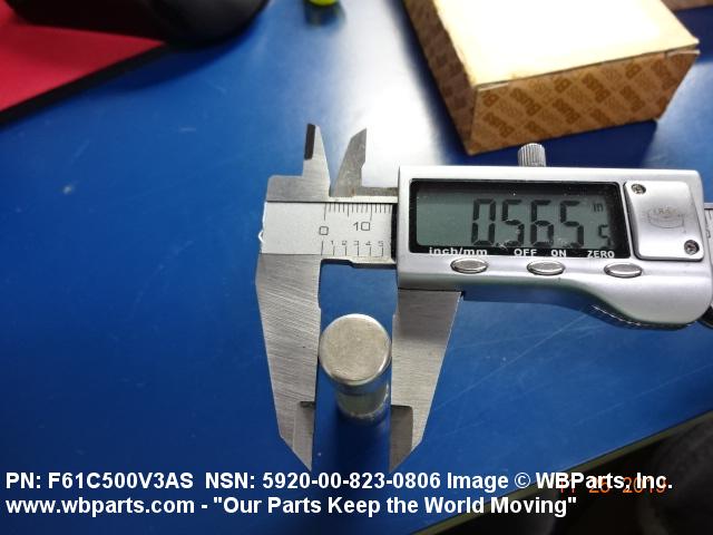 Part Alternates: F61C500V3AS, MIL-F-15160/61, MILF1516061, MIL-PRF-15160/61, MILPRF1516061, 103.9-166, 1039166, 5920-00-823-0806, 00-823-0806, 5920008230806, 008230806