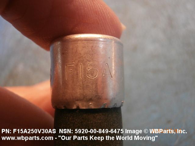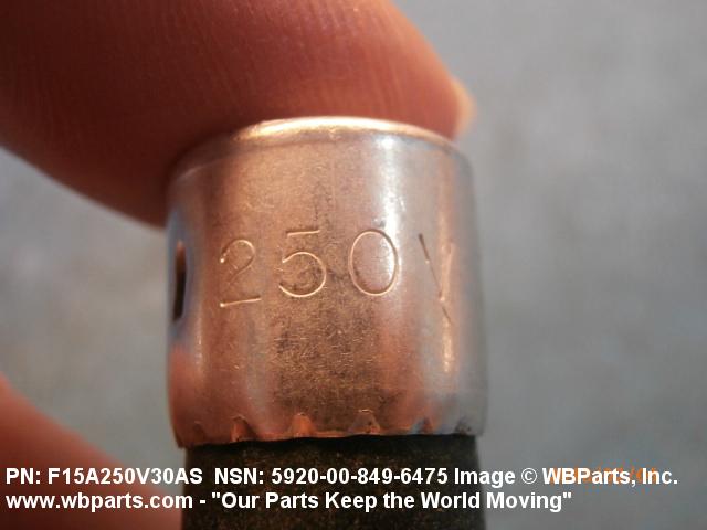 NSN 5920-00-849-6475 F15A250V30AS, GE3173, MIL-F-15160/15