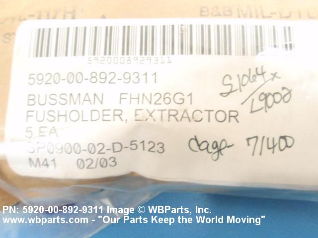 | 59 | 01 JAN 1962 | 00-892-9311 | 28909 ( FUSEHOLDER, EXTRACTOR POST ) |