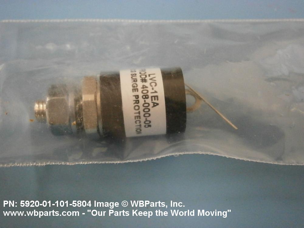 5920-01-101-5804 An item specifically designed to absorb and consume surges of voltage such as that resulting across contacts when breaking a circuit having an inductive load or a burst of static across a telephone receiver. It is connected in parallel with the item it is protecting. It may be made up of metallic rectifier cells or semiconductor devices connected back-to-back which may or may not be shunted by a capacitor. It may also be a single rectifier cell or semiconductor device shunted by a capacitor. Excludes metallic rectifiers which are rated for rectifying capabilities and all single unit semiconductor devices not shunted by a capacitor. For items perfoming this function by use of voltage sensitive resistors, see RESISTOR, VOLTAGE SENSITIVE. See also CUTOUT DISK, PROTECTIVE.