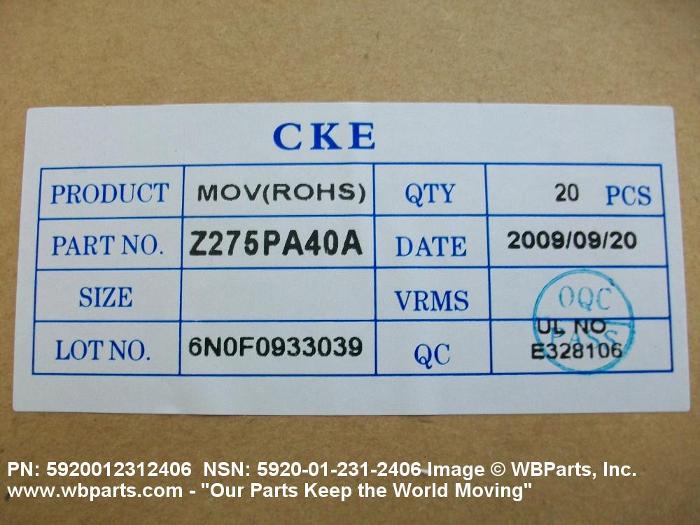 Part Alternates: V275PA40A, 106360031403, 1063-60031-40-3, 5920-01-231-2406, 01-231-2406, 5920012312406, 012312406