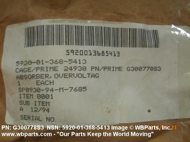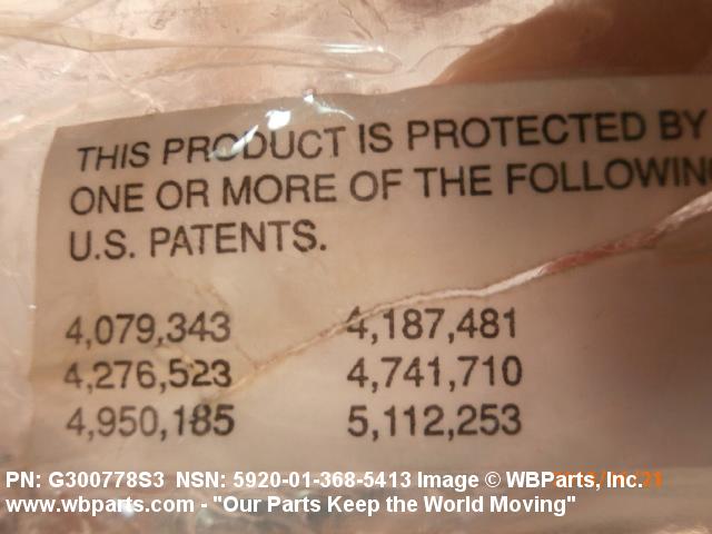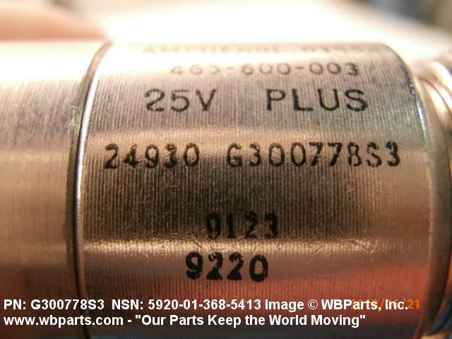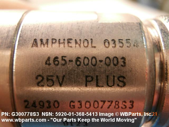 Part Alternates: G300778S3, 465-600-003 , 5920-01-368-5413, 01-368-5413, 5920013685413, 465600003, 013685413