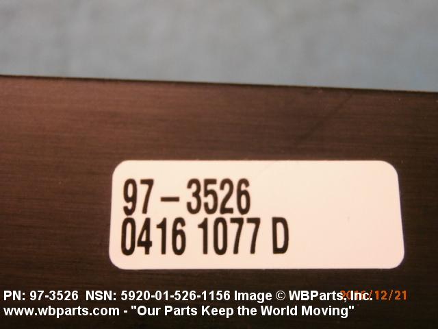 Part Alternates: 6967ED573 PC.NO.23A, 6967ED573PCNO23A, 973526, 97-3526, 5920-01-526-1156, 01-526-1156, 5920015261156, 015261156