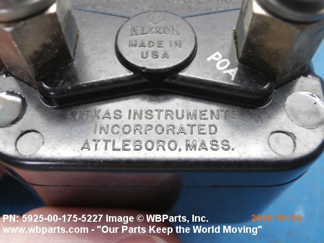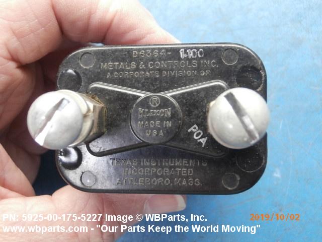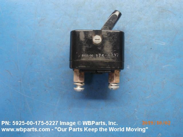 5925-00-175-5227 A device with means other than fuses for automatically opening the circuit in which it is installed when the current varies from the predetermined value for which the device is set. May include provisions for manual operation. At least one set of contacts must be in series with the actuating element(s). A combination of semiconductor and passive devices may be used in lieu of contacts. For automatically operated items in which the actuating (tripping) element and contacts are not in series, see RELAY (as modified). For items which are operated both manually and automatically but the actuating elements and contact are not in series, see RELAY-SWITCH. Excludes CIRCUIT BREAKER BOX and magneto "breaker" assemblies. See also SWITCH (as modified); and CONTROLLER.