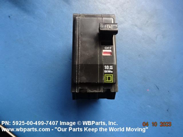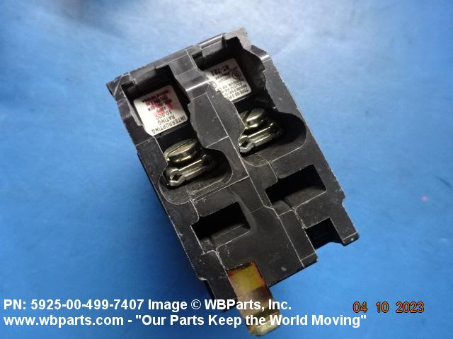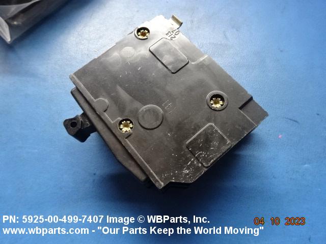 5925-00-499-7407 A device with means other than fuses for automatically opening the circuit in which it is installed when the current varies from the predetermined value for which the device is set. May include provisions for manual operation. At least one set of contacts must be in series with the actuating element(s). A combination of semiconductor and passive devices may be used in lieu of contacts. For automatically operated items in which the actuating (tripping) element and contacts are not in series, see RELAY (as modified). For items which are operated both manually and automatically but the actuating elements and contact are not in series, see RELAY-SWITCH. Excludes CIRCUIT BREAKER BOX and magneto "breaker" assemblies. See also SWITCH (as modified); and CONTROLLER.