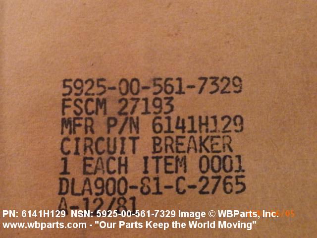 Part Alternates: DMS 80070B, DMS80070B, 6141H129, 5925-00-561-7329, 00-561-7329, 5925005617329, 005617329
