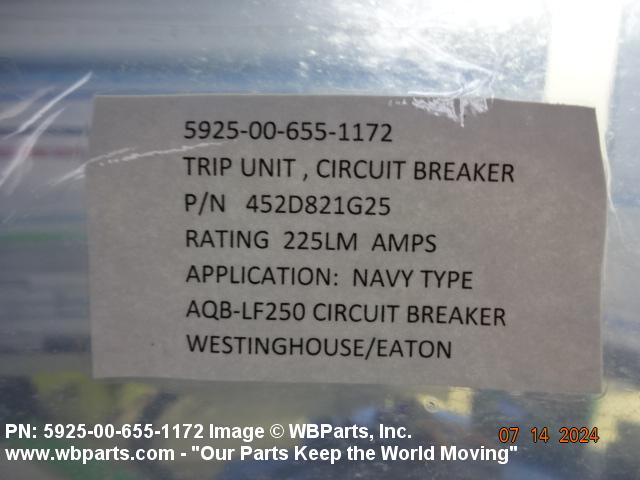 5925-00-655-1172 An electromechanical device which releases the holding mechanism and permits the contacts of a circuit breaker to open. It is a replacement part of a circuit breaker. Does not include relays. See also THERMAL RELEASE, CIRCUIT BREAKER.