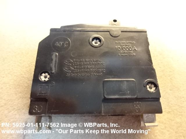 5925-01-111-7562 A device with means other than fuses for automatically opening the circuit in which it is installed when the current varies from the predetermined value for which the device is set. May include provisions for manual operation. At least one set of contacts must be in series with the actuating element(s). A combination of semiconductor and passive devices may be used in lieu of contacts. For automatically operated items in which the actuating (tripping) element and contacts are not in series, see RELAY (as modified). For items which are operated both manually and automatically but the actuating elements and contact are not in series, see RELAY-SWITCH. Excludes CIRCUIT BREAKER BOX and magneto "breaker" assemblies. See also SWITCH (as modified); and CONTROLLER.