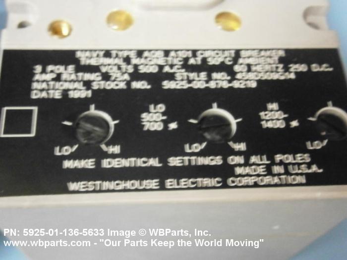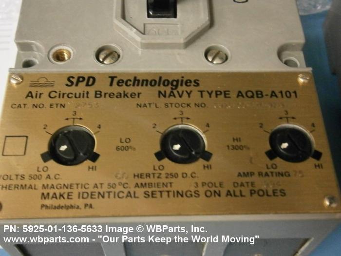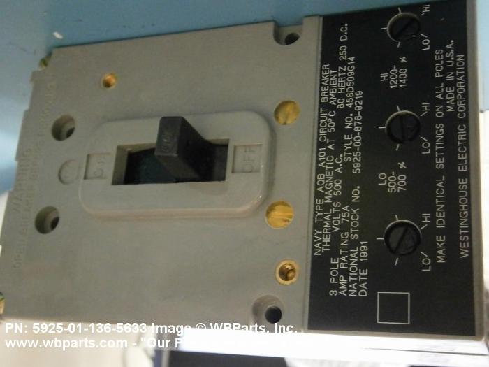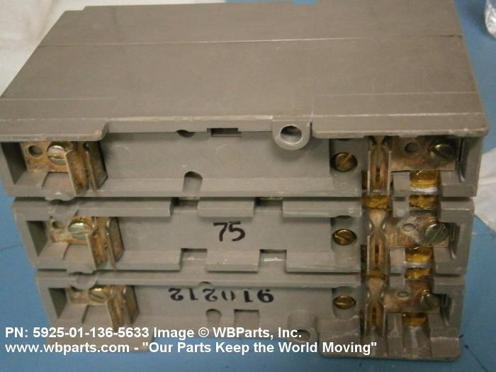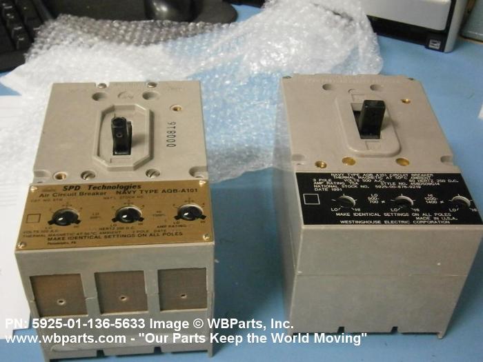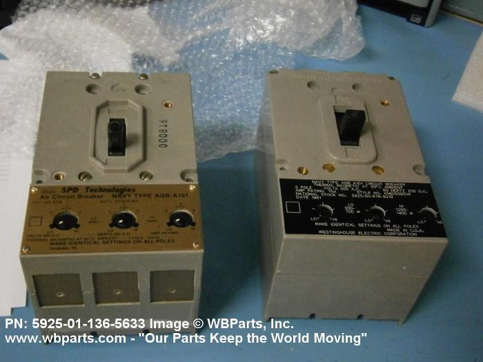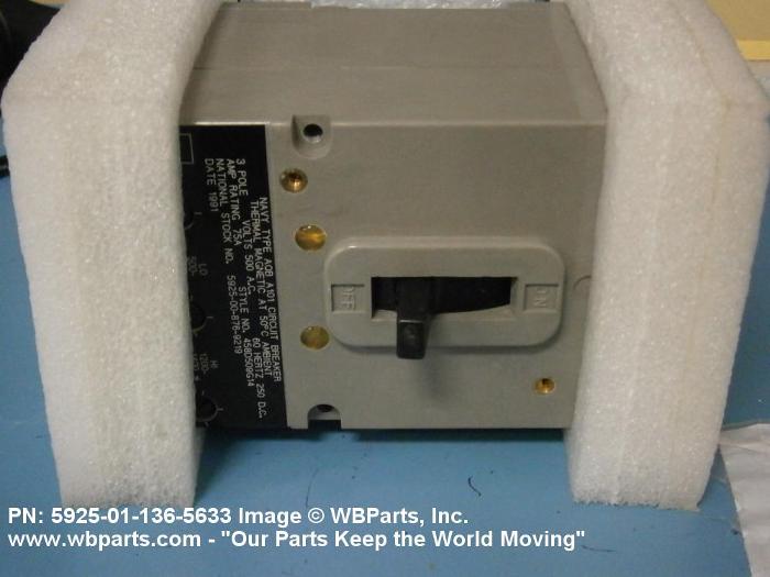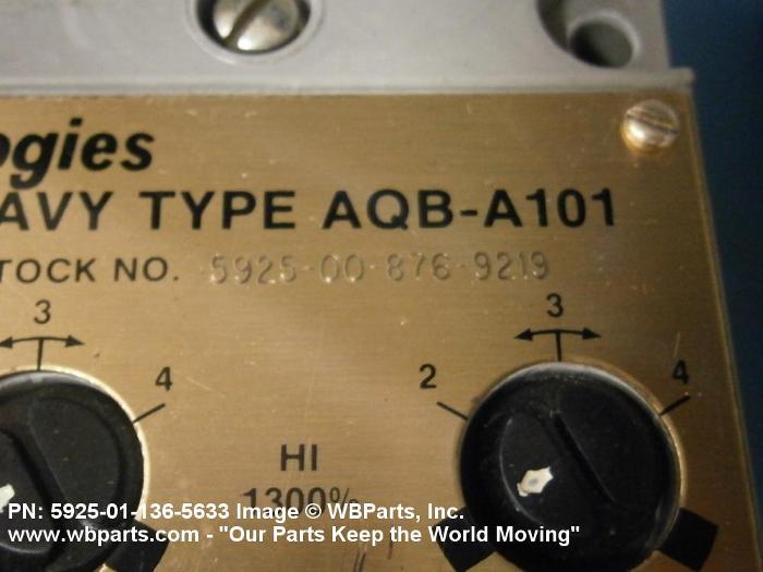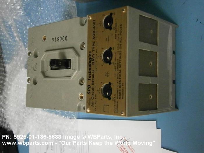 5925-01-136-5633 A device with means other than fuses for automatically opening the circuit in which it is installed when the current varies from the predetermined value for which the device is set. May include provisions for manual operation. At least one set of contacts must be in series with the actuating element(s). A combination of semiconductor and passive devices may be used in lieu of contacts. For automatically operated items in which the actuating (tripping) element and contacts are not in series, see RELAY (as modified). For items which are operated both manually and automatically but the actuating elements and contact are not in series, see RELAY-SWITCH. Excludes CIRCUIT BREAKER BOX and magneto "breaker" assemblies. See also SWITCH (as modified); and CONTROLLER.