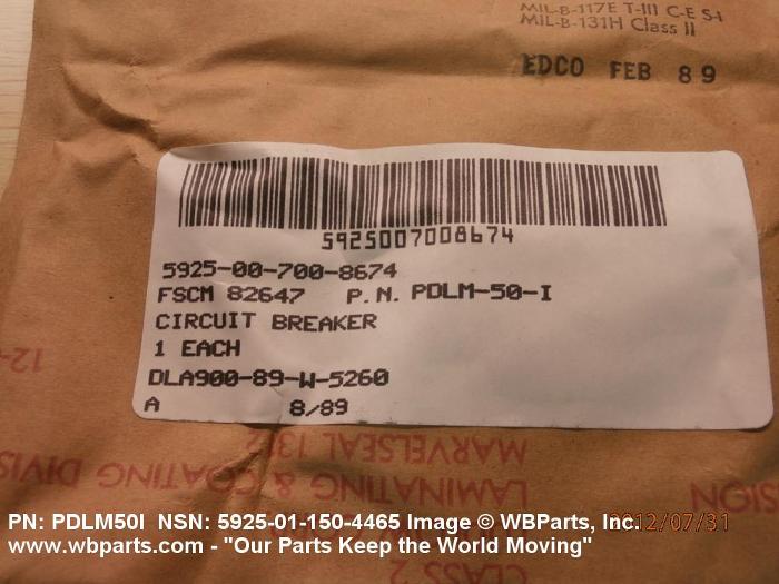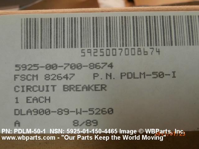 Part Alternates: PDLM501, PDLM-50-1, PDLM50I, PDLM-50-I, 5925-01-150-4465, 01-150-4465, 5925011504465, 011504465