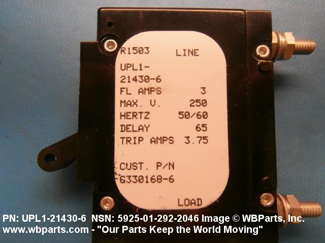 Part Alternates: AM1Z4846, AM1-Z484-6, G3301686, G330168-6, UPL1214306, UPL1-21430-6, 5925-01-292-2046, 01-292-2046, 5925012922046, 012922046