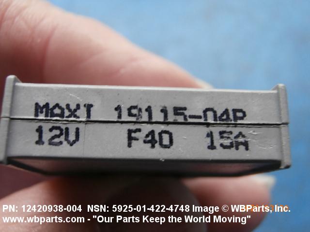Part Alternates: 12420938004, 12420938-004, 1911504M, 19115-04M , 1911504P, 19115-04P, 1911515P, 19115-15P, 5925-01-422-4748, 01-422-4748, 5925014224748, 014224748