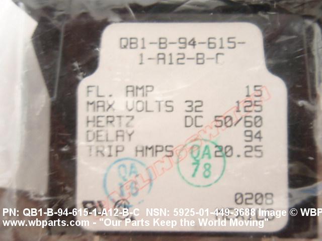 Part Alternates: QB1B946151A12BC, QB1-B-94-615-1-A12-B-C, 5925-01-449-3688, 01-449-3688, 5925014493688, 014493688