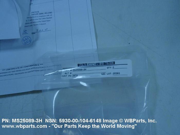 NSN 5930-00-104-6148 MS250893H, MS25089-3H, W193HA6