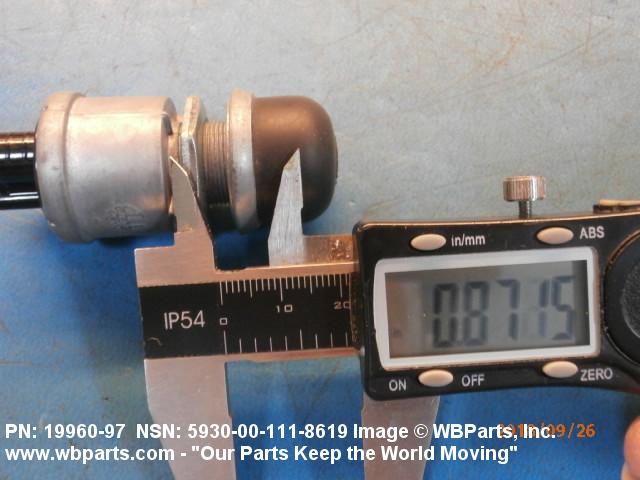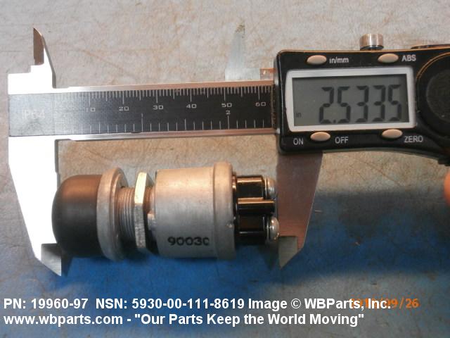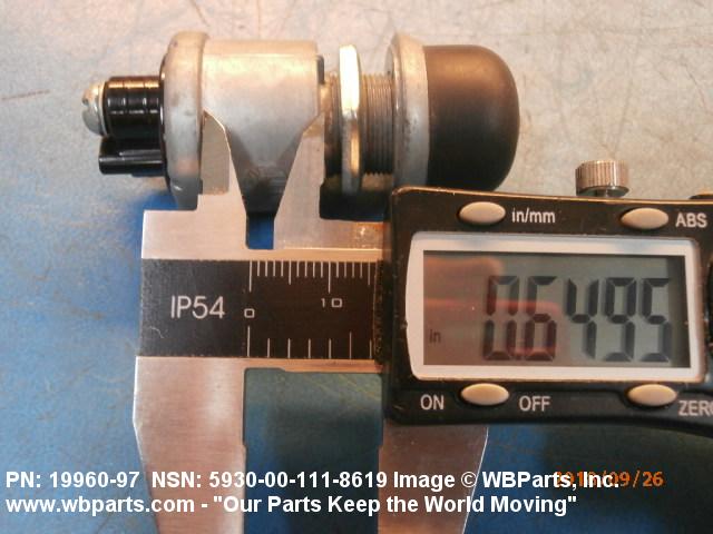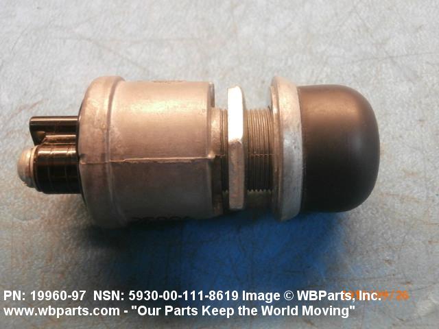 5930-00-111-8619 A switch that is externally actuated by a device such as a push rod or button, which requires pushing for each actuation. The action may be momentary, with mechanical return. The actuating device may or may not be an integral part of the switch. The item may include provisions for mounting indicating lamp(s) or light emitting diode(s) in the actuator. Includes items consisting of individually separable switches that are physically interlocked, that have a common actuator, or are electrically connected. Excludes LIGHT-SWITCH; LIGHT-SWITCH ASSEMBLY; SWITCH, BEAM SELECTING, HEADLIGHT; SWITCH, FOOT; SWITCH, INTERLOCK; SWITCH, PRESSURE; SWITCH, PUSH-PULL; SWITCH, SENSITIVE and SWITCH ASSEMBLY. For devices which start, stop, reverse, select and/or regulate the speed of a motor, see STARTER, MOTOR and CONTROLLER, MOTOR.