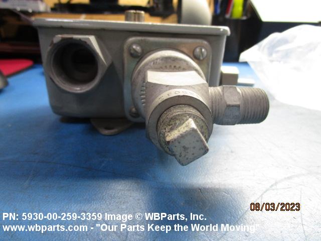 5930-00-259-3359 A switch which is actuated by changes in pressure of any gas or liquid or by changes in a vacuum acting upon its sensing element. Excludes BAROSWITCH; SWITCH, PRESSURE-THERMOSTATIC; and SWITCH, SENSITIVE.