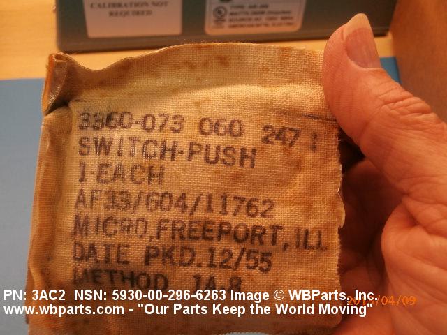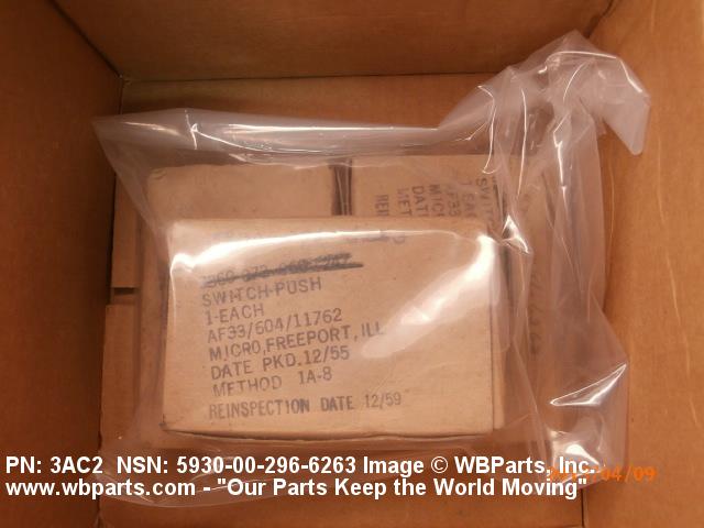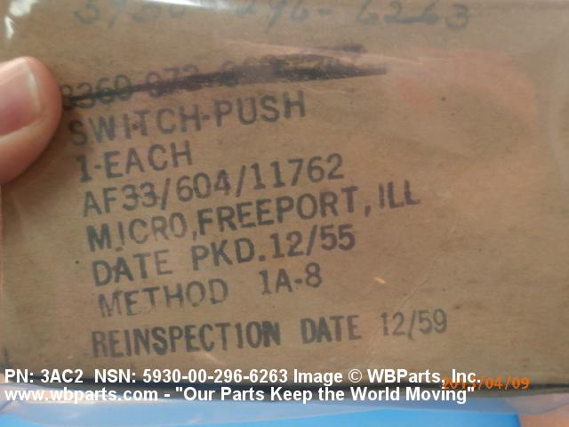 5930-00-296-6263 A switch that is externally actuated by a device such as a push rod or button, which requires pushing for each actuation. The action may be momentary, with mechanical return. The actuating device may or may not be an integral part of the switch. The item may include provisions for mounting indicating lamp(s) or light emitting diode(s) in the actuator. Includes items consisting of individually separable switches that are physically interlocked, that have a common actuator, or are electrically connected. Excludes LIGHT-SWITCH; LIGHT-SWITCH ASSEMBLY; SWITCH, BEAM SELECTING, HEADLIGHT; SWITCH, FOOT; SWITCH, INTERLOCK; SWITCH, PRESSURE; SWITCH, PUSH-PULL; SWITCH, SENSITIVE and SWITCH ASSEMBLY. For devices which start, stop, reverse, select and/or regulate the speed of a motor, see STARTER, MOTOR and CONTROLLER, MOTOR.