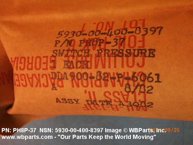 Part Alternates: PH8P37, 5930-00-400-8397, 00-400-8397, 5930004008397, 004008397
