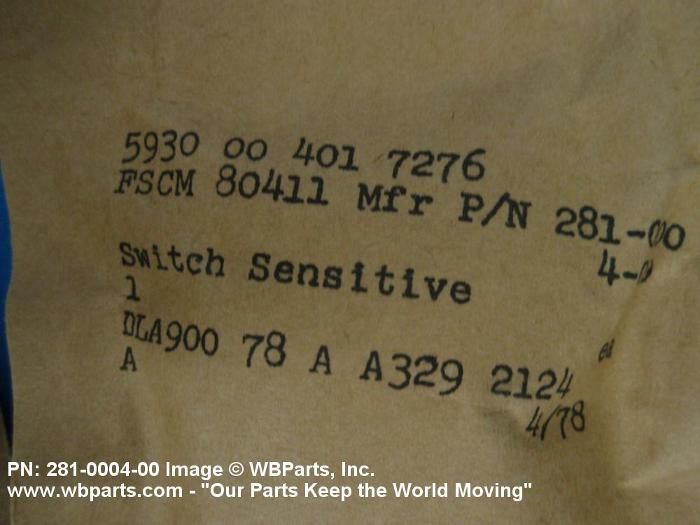 NSN 5930-00-401-7276 VD0004, 281-0004-00, 14012