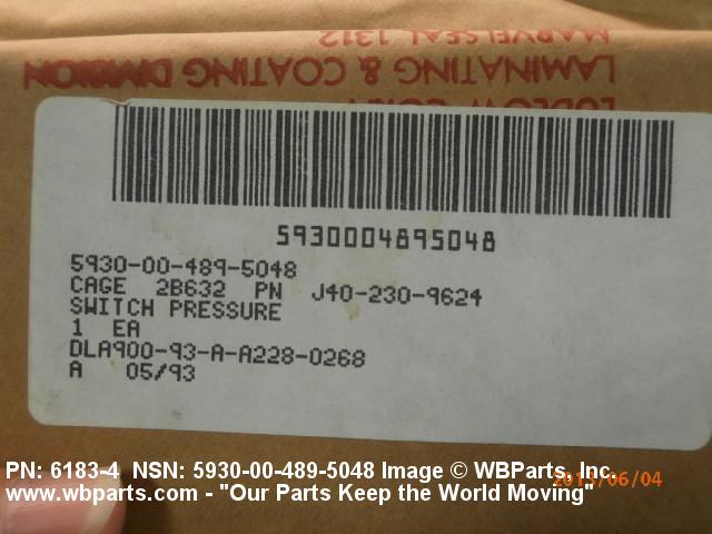 Part Alternates: J4014820, J40-14820, 61834, 6183-4, 5930-00-489-5048, 00-489-5048, 5930004895048, 004895048