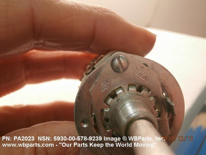 5930-00-578-9239 A switch actuated by a definite angular rotation of the switch shaft about its axis. For items having rated actuation travel and pressure characteristics, see SWITCH, SENSITIVE. Excludes RELAY, ROTARY; SWITCH, STEPPING; and SWITCH, TELEPHONE (as modified).