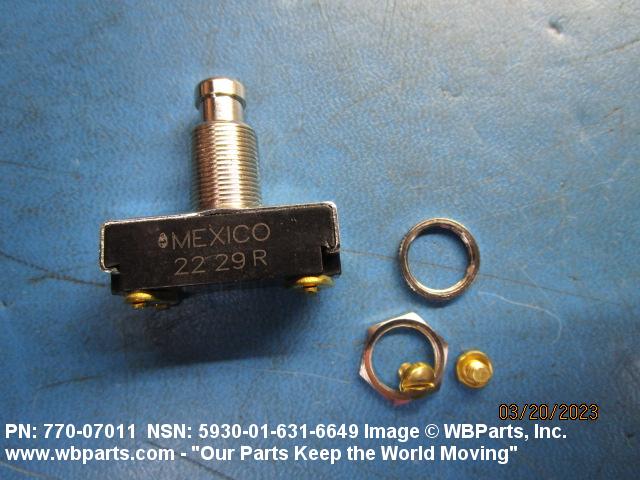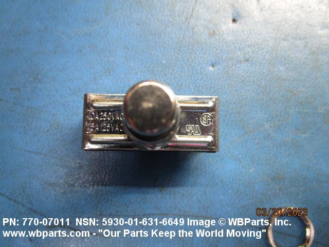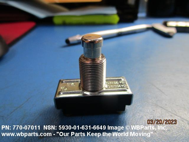 5930-00-581-7916 A switch that is externally actuated by a device such as a push rod or button, which requires pushing for each actuation. The action may be momentary, with mechanical return. The actuating device may or may not be an integral part of the switch. The item may include provisions for mounting indicating lamp(s) or light emitting diode(s) in the actuator. Includes items consisting of individually separable switches that are physically interlocked, that have a common actuator, or are electrically connected. Excludes LIGHT-SWITCH; LIGHT-SWITCH ASSEMBLY; SWITCH, BEAM SELECTING, HEADLIGHT; SWITCH, FOOT; SWITCH, INTERLOCK; SWITCH, PRESSURE; SWITCH, PUSH-PULL; SWITCH, SENSITIVE and SWITCH ASSEMBLY. For devices which start, stop, reverse, select and/or regulate the speed of a motor, see STARTER, MOTOR and CONTROLLER, MOTOR.