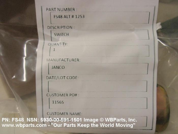 Part Alternates: 1253, 695157, FS48, 5930-00-591-1501, 00-591-1501, 5930005911501, 005911501
